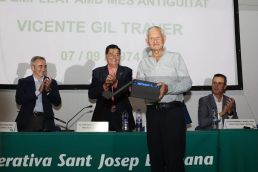 A continuació, es va retre homenatge als treballadors, socis i consellers -en la figura dels més veterans actualment, Vicente Gil Traver, Jaime Sanchis Urios i Eduardo Salas Gargallo, respectivament-.